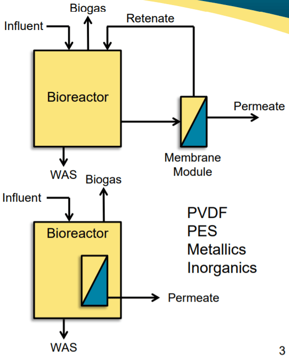 در ابتدا فناوری MBR برای تصفیه فاضلاب شهری یا خانگی مورد استفاده قرار گرفت. با این وجود، سیستم های MBR دارای پتانسیل گسترده‌ای در کاربردهای مختلفی از جمله تصفیه فاضلاب صنعتی، تصفیه شیرابه حاصل از هضم زباله‌های جامد دارند. انواع فاضلاب‌های صنعتی از صنایع غذایی، خمیر کاغذ، نساجی، شیمیایی، دارویی، روغنی و پتروشیمی، دباغی و صنایع تولیدی ناشی می‌شود. فرایندهای بیهوازی از جمله روش‌های موثر تصفیه این نوع از فاضلاب‌ها هستند. راهکار رایج افزایش راندمان سیستم‌های بی‌هوازی نگهداری بیومس به دلیل نرخ رشد پایین میکروارگانیسم‌های بی هوازی است. بیوراکتور غشایی بی‌هوازی به عنوان یک پروسه تصفیه بیولوژیکی با امکان حفظ کامل بیومس تشکیل شده این شرایط را فراهم میکند.