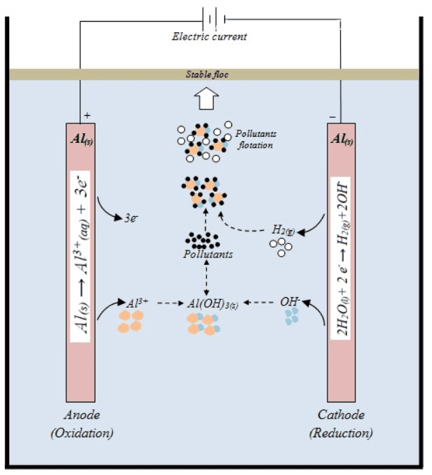 حذف آلایندهها بوسیله ی شناورسازی الکتریکی و چسبیدن حباب های گازهای الکترولیتی به ذرات آلاینده